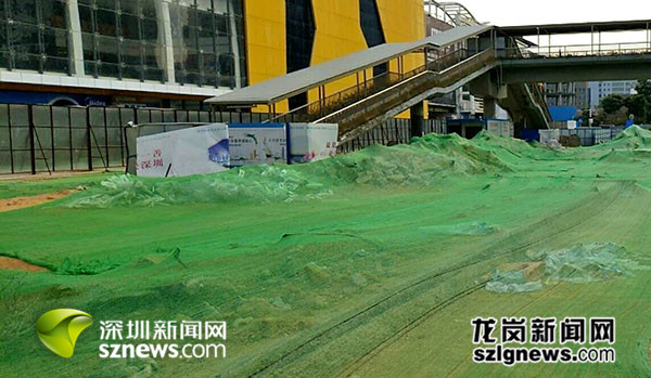 裸露泥土被綠色防塵網(wǎng)遮蓋