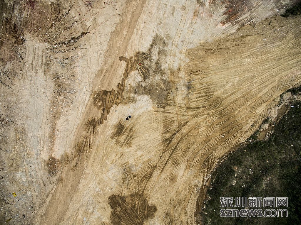 ?記者站在渣土場(chǎng)的坡頂看到,數(shù)十層樓高的渣土堆很是壯觀,一眼望不到邊。而地面行車的痕跡清晰可見(jiàn),不經(jīng)意間還可以看到一些土坡上的裂紋。據(jù)保安介紹,裂紋是因下雨所致。