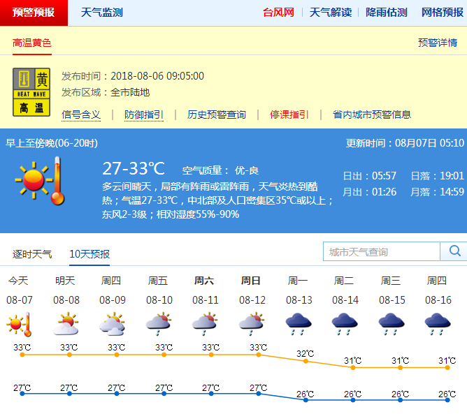 據(jù)市氣象臺綜合各種資料預測,今年8月深圳天氣將呈“臺風影響風險高,高溫炎熱和局地熱雷雨并存”的特點。月內(nèi)仍多陽光陣雨相伴天氣,高溫酷熱和局地強降雨間隔出現(xiàn)。期間,主要降水過程出現(xiàn)在7日至10日、18日至21日和26日至30日。