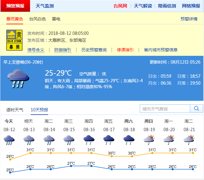 市氣象臺預(yù)測,13日降雨減弱,有陣雨,局部大雨。14-15日,多云有陣雨,氣溫上升,最高氣溫指向33℃。