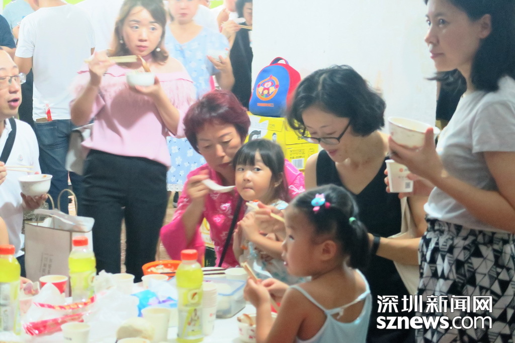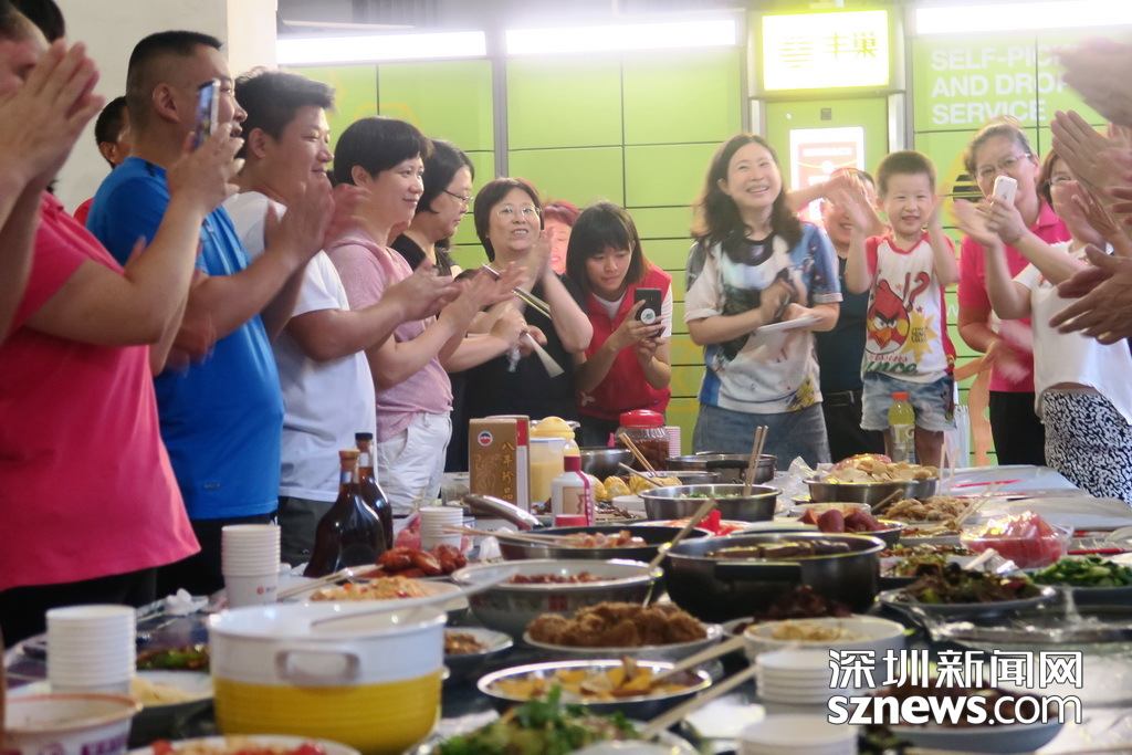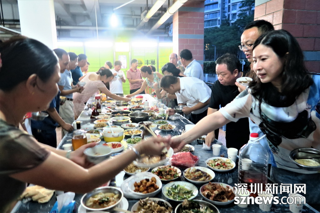 深圳新聞網(wǎng)訊 (記者 劉婷 林毓瑾 通訊員 張晉)住在鋼筋水泥森林,一墻之隔不往來,擦肩而過不搭話,這或許是城市鄰里關(guān)系的“痛點”,但深圳水木華庭的業(yè)主在8月11日舉辦了別開生面的“百家宴”,卻吃出濃濃的鄰里情,小編隔著屏幕都聞到了“愛的味道”…… 為慶祝水木華庭新一屆業(yè)委會的誕生,水木華庭業(yè)主微信群的群主楊莉建議11日在4棟B單元架空層,開個“百家宴”。這個主意一出來,水木華庭的業(yè)主們紛紛響應(yīng),業(yè)委會成員和業(yè)主大會籌備組成員也都紛紛表示:屆時將爭取貢獻(xiàn)一兩個拿手好菜! 于是乎,業(yè)主們分頭行動,籌備工作有條不紊地進(jìn)行。8月11日晚,水木華庭入伙15年來的首次“百家宴”如期舉行。