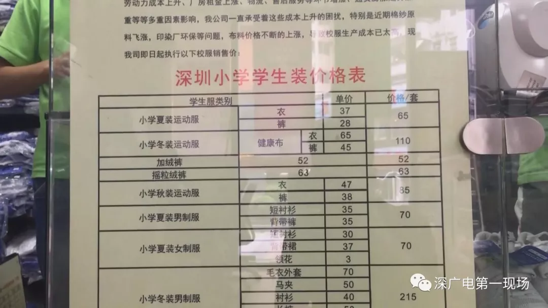 記者了解到,2011年,深圳校服曾進行過調(diào)價,當(dāng)時教育部門發(fā)布通告稱,由于廠家成本上升,校服價格統(tǒng)一調(diào)整,平均價格比之前高出14.02%。之后,這一價格標準一直沿用。
