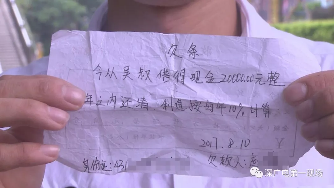 男子為了親叔叔一張借條跑來(lái)深圳 債主卻說(shuō)沒(méi)借過(guò)錢
