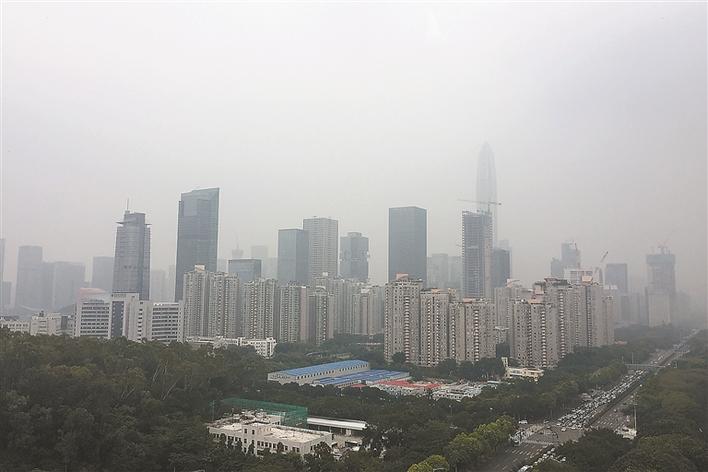▲深圳昨現(xiàn)灰霾天。 深圳晚報(bào) 見(jiàn)習(xí)記者 楊少昆 攝