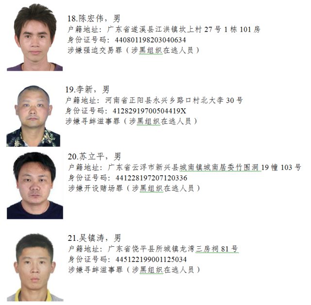 近日,省掃黑除惡辦和省公安廳聯(lián)合公開懸賞50名在逃黑惡勢力犯罪嫌疑人,經(jīng)查證屬實并予以抓獲的,獎勵人民幣1-5萬元不等。見到下面這50名在逃黑惡勢力犯罪嫌疑人,請果斷舉報!