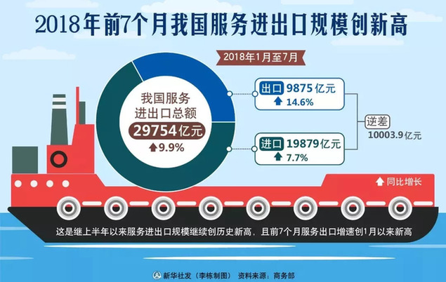 ① 商務(wù)部發(fā)布數(shù)據(jù)顯示,前7個(gè)月我國服務(wù)進(jìn)出口規(guī)模創(chuàng)新高。