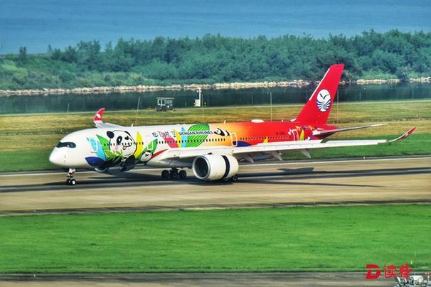 原標(biāo)題:川航A350飛機(jī)首秀深圳 “熊貓彩繪”驚艷深圳機(jī)場(chǎng)