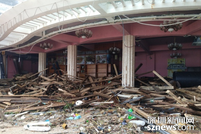 小梅沙旅游度假村景區(qū)內(nèi)沙灘海沙被卷走超7萬多立方,約2000米的堤岸及道路沖垮,公共、建筑設(shè)施及構(gòu)筑物全部受損,部分完全損毀,13處經(jīng)營管理場所損毀,綠化、樹木等嚴重破壞,直接經(jīng)濟損失預(yù)估超過5000萬元。