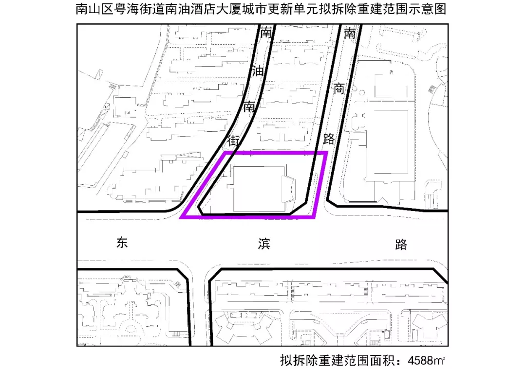 9月18日,南山區(qū)城市更新局在官網(wǎng)上發(fā)布了“關(guān)于《2018年深圳市南山區(qū)城市更新單元計劃第五批計劃》的公告”,南油酒店位列其中。公告明確指出,南油酒店擬更新方向為商業(yè)用地,擬拆除范圍用地面積共4588平方米,擬拆除重建用地范圍內(nèi)應(yīng)落實不少于1376平方米用地用于建設(shè)城市基礎(chǔ)設(shè)施、公共服務(wù)設(shè)施或者城市公共利益項目,擬貢獻(xiàn)率約為30%。