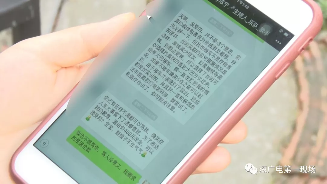 事情發(fā)生之后,李女士也多次和司儀小寧進(jìn)行溝通,要求對方退還全部訂金或者當(dāng)面賠禮道歉,一開始對方的態(tài)度還很好,并且退還了400元的定金,但最近幾天就不怎么搭理了。