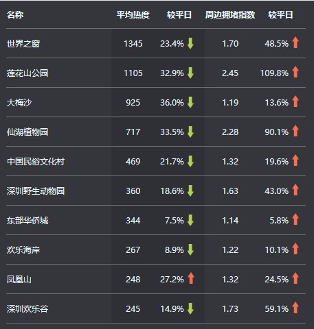 22日12時至今日12時,我市熱門景區(qū)交通壓力較平日有明顯上升,擁堵高峰大部分出現(xiàn)在22日16時至17時,熱門景區(qū)周邊道路較為擁堵的有:蓮花山公園、仙湖植物園及深圳歡樂谷。