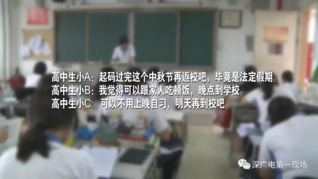 我們還了解到,就讀高三的學生只有周六放了一天假,從昨天開始就一直在上課,預計要上到國慶節(jié)才能休息,這樣算來,學生一共要連上 8 天的課程。