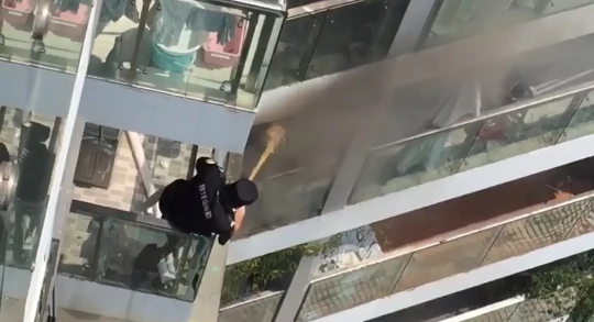 保利物業(yè)經(jīng)理?xiàng)羁∶髀暑I(lǐng)隊(duì)員合力救火