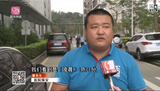 值班保安緊急通知了醫(yī)院警務室民警,并在差不多相同的時間趕到了事發(fā)病房了解情況,并第一時間查看病房監(jiān)控。在醫(yī)院樓下,記者見到了昨晚值班的保安之一董先生,他也證實了劉女士的說法。