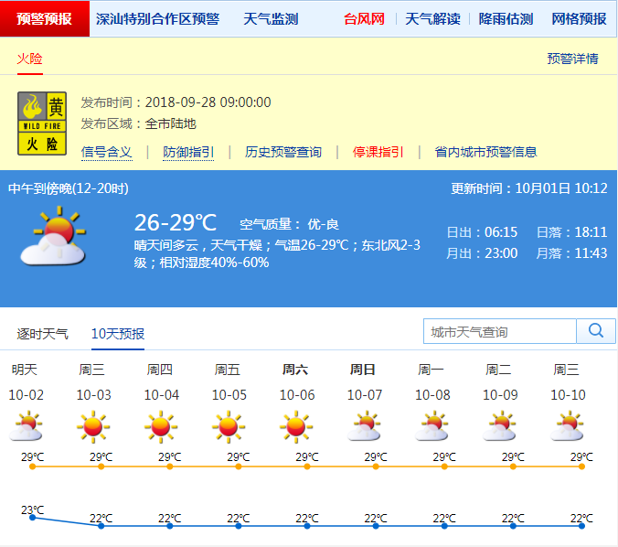 深圳新聞網訊 市氣象臺預測,國慶假期,深圳天氣平穩(wěn),大致晴朗干燥,氣溫波動不大,但火險氣象風險高,需注意森林防火和家居用火安全,早晚沿海和高地易出現6-7級陣風。