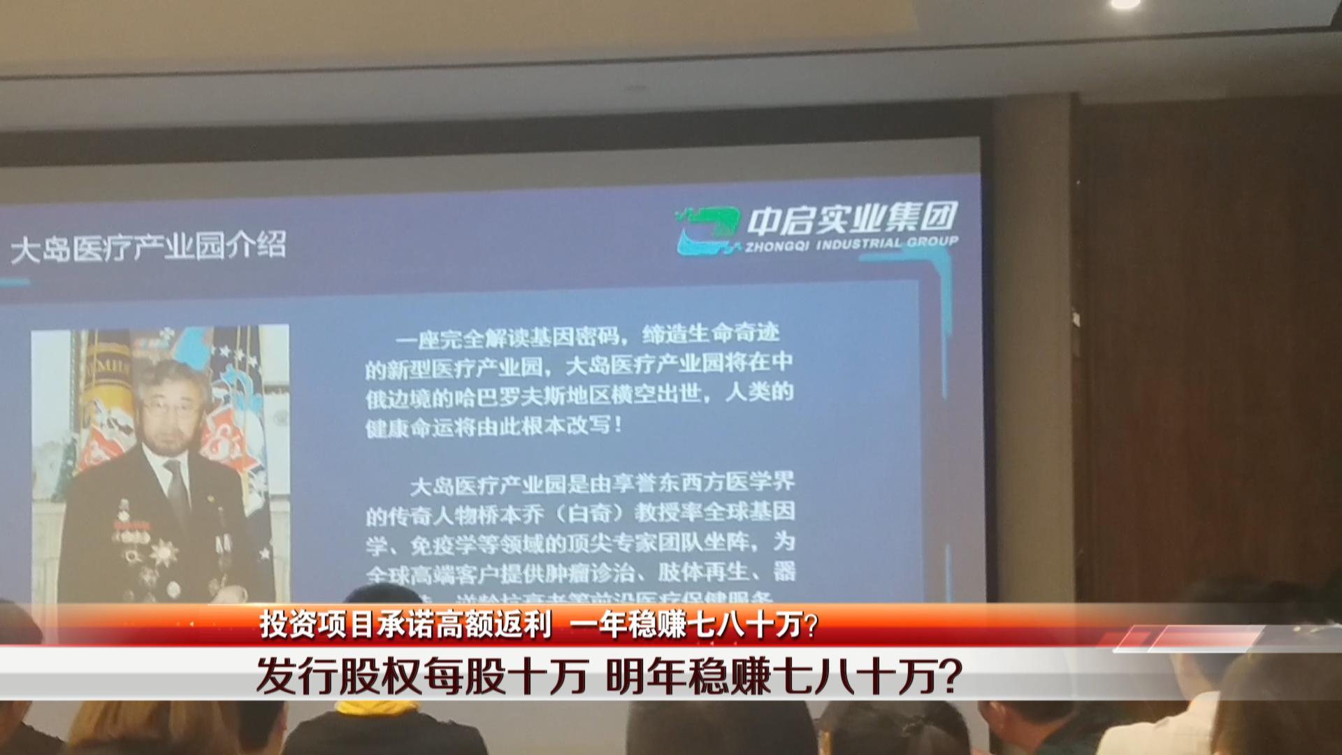 宣講人推廣的重磅項(xiàng)目是,企業(yè)跟一位姓白的教授合作的大島醫(yī)療產(chǎn)業(yè)園。她表示這位白教授因?yàn)闅v史原因失去了國(guó)籍,只能滯留在中俄邊界,因此大島醫(yī)療產(chǎn)業(yè)園也只能設(shè)在中俄邊界。