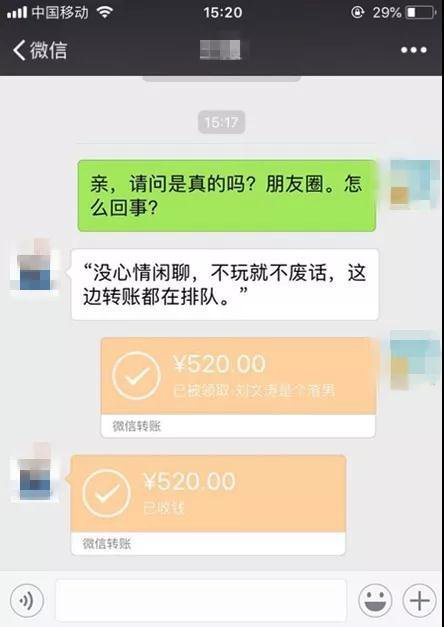 " 只要給我轉(zhuǎn)賬 520 元,備注 XX 是個(gè)渣男,我截圖發(fā)給他,我就返還十倍金額 "