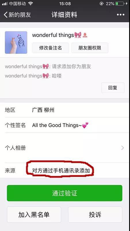 或者 " 通過手機(jī)通訊錄 " 添加的申請(qǐng),實(shí)際上是騙子使用一種軟件,把經(jīng)地下渠道收集到的眾多手機(jī)號(hào)碼自動(dòng)存入自己的手機(jī)通訊錄,然后由微信自動(dòng)匹配發(fā)出好友申請(qǐng),迷惑性極強(qiáng)。