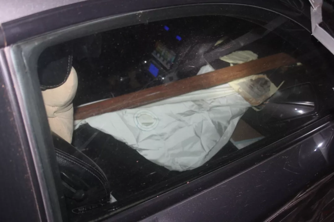 執(zhí)勤民警接報后立即前往龍崗區(qū)長深高速3655KM往鹽田方向路段(高速路)處理事故,現(xiàn)場發(fā)現(xiàn)肇事粵B牌小車駛進了高速公路右邊的施工區(qū)域撞上了鐵管,氣囊爆開,擋風(fēng)玻璃被鐵管直接刺穿,車輛損毀嚴重。
