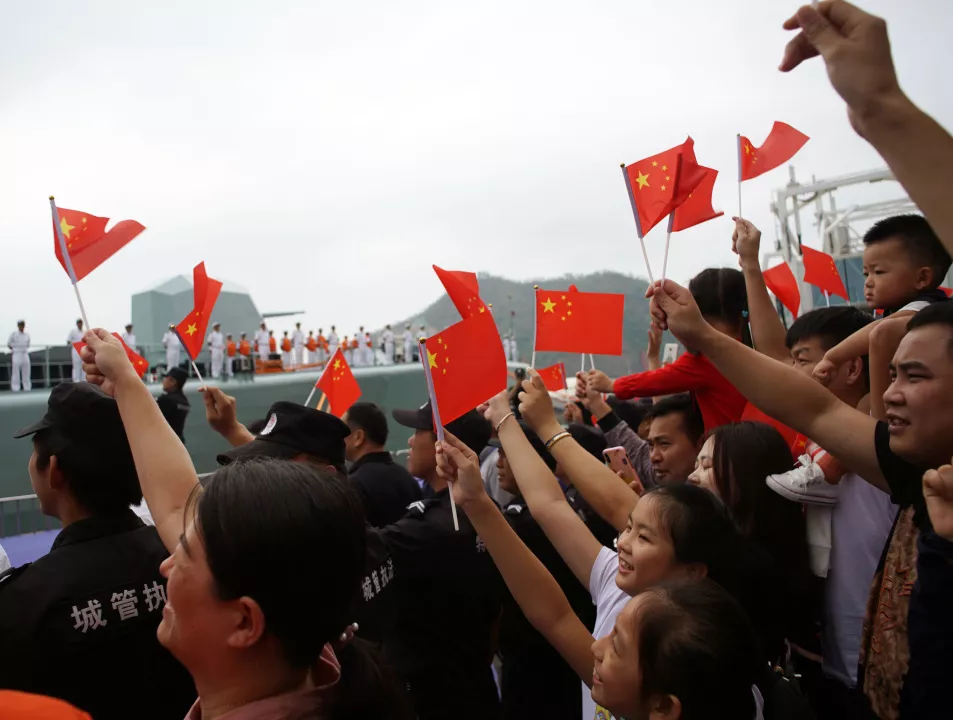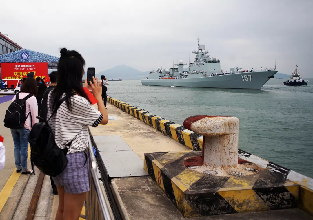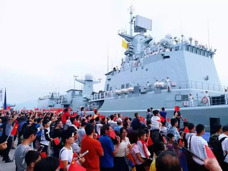 ▲深圳艦結(jié)束為期4天的訪深行程返回湛江母港,數(shù)百市民自發(fā)歡送10月20日下午3時(shí)許,蛇口郵輪母港碼頭早已聚滿了自發(fā)前來(lái)為深圳艦送行的數(shù)百名市民群眾。碼頭上,市民揮舞著五星紅旗,高呼:“歡迎深圳艦再回來(lái)!”艦艇上面,全體海軍官兵站立艦舷向市民敬禮,隨著一聲長(zhǎng)長(zhǎng)的汽笛聲,海軍深圳艦艦艏犁開海面,拖著長(zhǎng)長(zhǎng)的尾跡,帶著深圳第二故鄉(xiāng)人民的殷殷離別之情,起航駛向湛江母港。