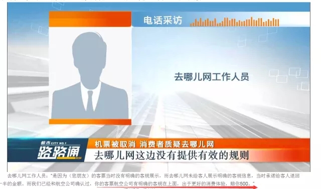 結(jié)果在返程的時(shí)候被告知航班取消,可去哪兒網(wǎng)上顯示已出票