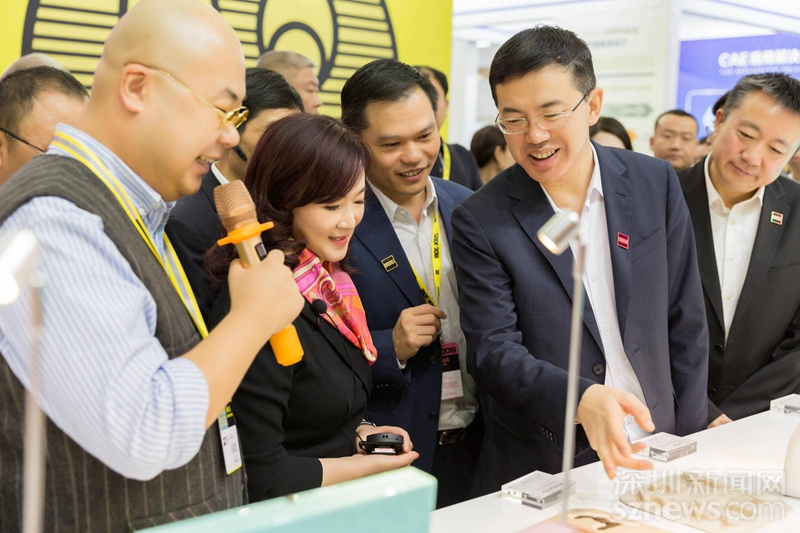 深圳市副市長艾學(xué)峰(右二)參觀第六屆深圳國際工業(yè)設(shè)計(jì)大展的設(shè)計(jì)作品(主辦方供圖)