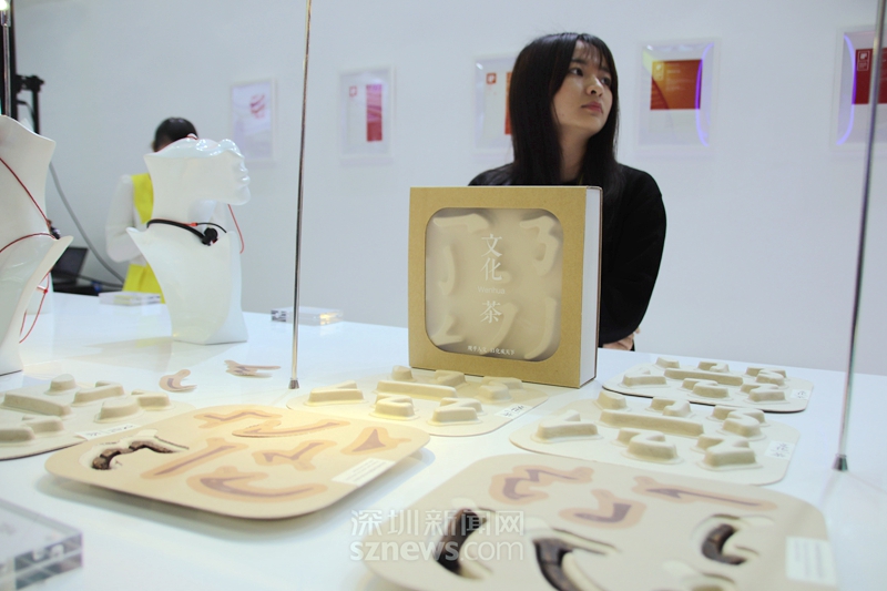 將漢字筆畫拆開分別做成容器,每個筆畫的凹槽里放著茶餅