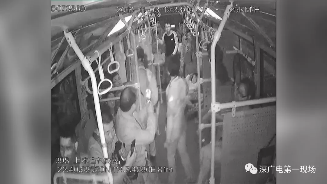 同時,周圍許多其它乘客也進(jìn)行勸阻,但是就在一名女乘客試圖制止這名打人的男子時,這名男子竟然又提腳踢了這名女乘客的腹部。當(dāng)班駕駛員立即選擇報警,隨后華南城警務(wù)室民警將涉事男子帶走。