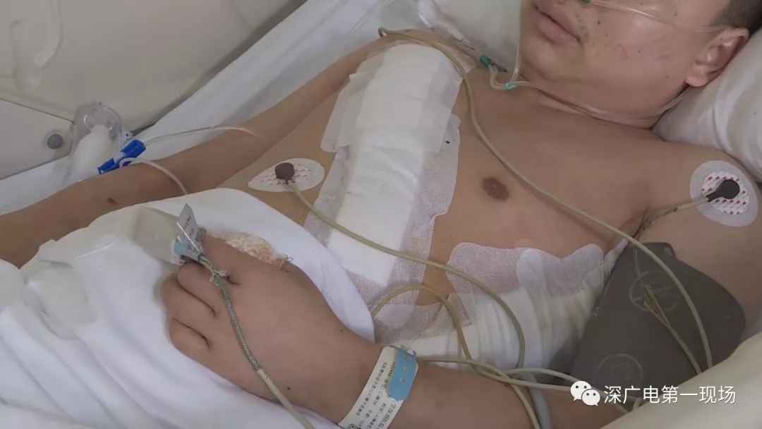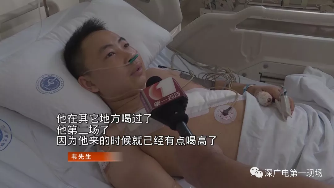 經(jīng)過急救,傷者韋先生已被轉(zhuǎn)往胸外科接受治療。韋先生說,昨天晚上因?yàn)榈秱朐旱目刹恢顾粋€(gè)人。