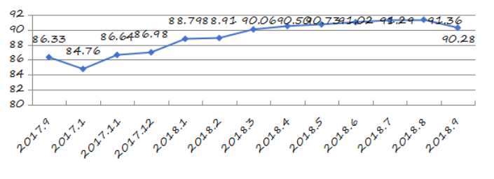 9月份羅湖區(qū)城市交通文明指數(shù)為90.35分,比上月增加1.51分,比上年同期增加4.52分,創(chuàng)下監(jiān)測(cè)以來最高分,全市排名第二(見圖6)。