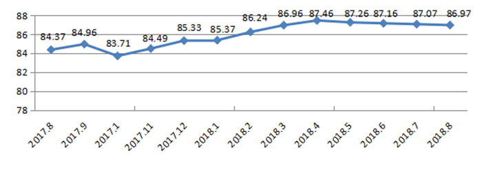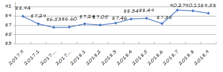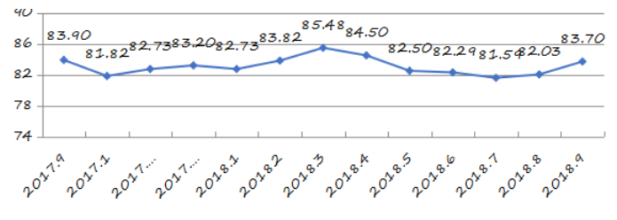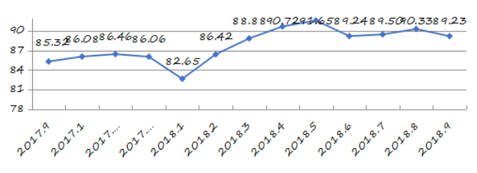 國(guó)家統(tǒng)計(jì)局深圳調(diào)查隊(duì)編制9月份深圳市城市交通文明指數(shù)為87.02分,比上月增加0.05分,比上年同期增加2.06分;深圳市城市交通文明進(jìn)步指數(shù)為-0.05 % (見圖1)。