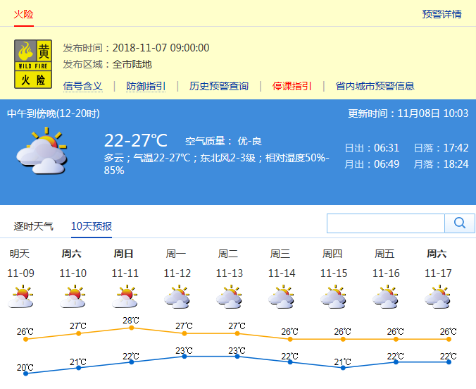 市氣象局發(fā)布未來十天天氣預(yù)報(bào)(數(shù)據(jù)更新于11月08日10時(shí)03分)