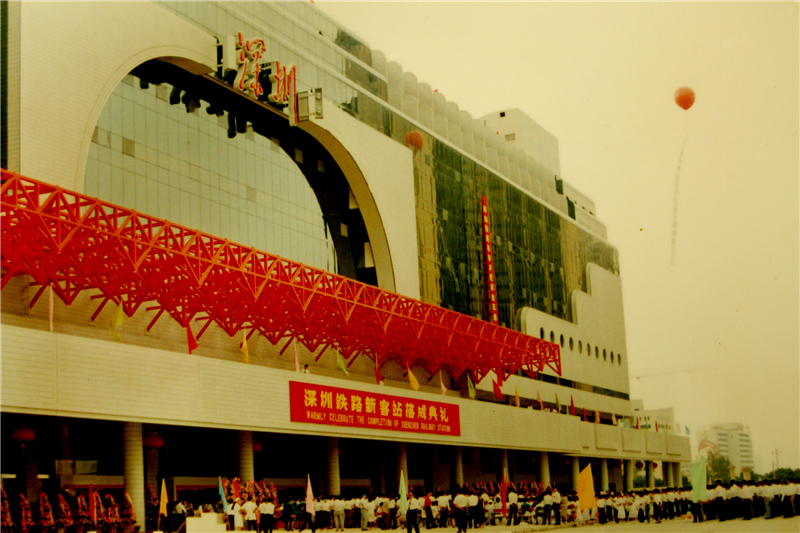 1990年6月,深圳市政府和廣鐵集團(tuán)共同對深圳車站進(jìn)行大規(guī)模改建,深圳新客站破土動工。1991年10月12日,深圳火車站新客站建成投入使用,時任國務(wù)院副總理田紀(jì)云出席典禮并剪彩,鄧小平為車站落成題寫了站名,特意少寫了一個“站”字。不僅將激勵留給深圳站,也留給深圳,對深圳敢想、敢闖、敢干的超常規(guī)發(fā)展寄于了殷切期望。