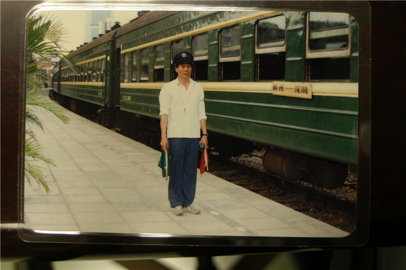 90年代,廣深線開行的列車為綠皮火車。圖中站內(nèi)指揮員引導(dǎo)列車
