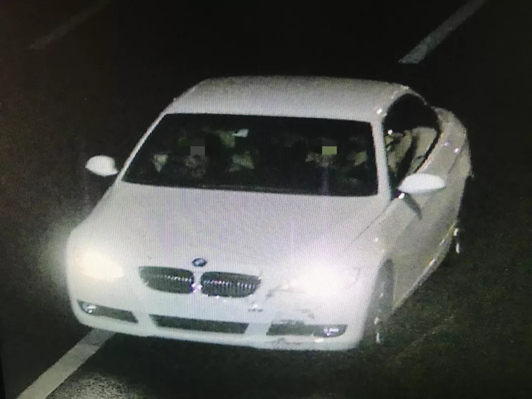 通過視頻監(jiān)控,民警初步判斷該肇事逃逸車輛為一輛未懸掛機動車號牌的白色寶馬轎車。