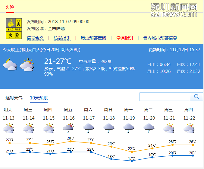市氣象局發(fā)布未來十天天氣預(yù)報(bào)(數(shù)據(jù)更新于11月12日15時(shí)37分)