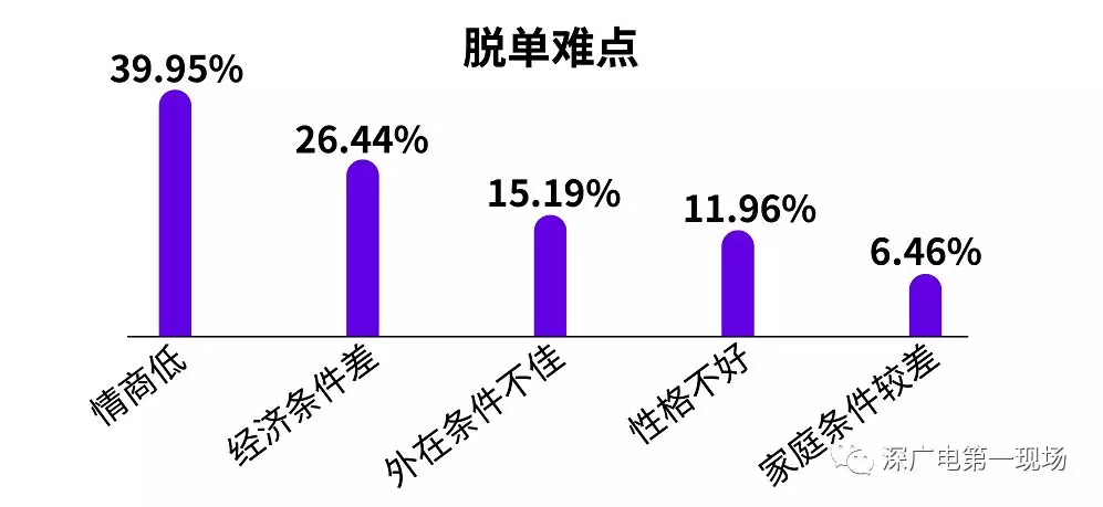 從單身升級到戀愛狀態(tài)又會遇見什么困擾?53.35%的單身男女認(rèn)為脫單,主要困擾為“聊天陷入尬聊”,其次為“怕表白被拒”和“僅限曖昧程度”。
