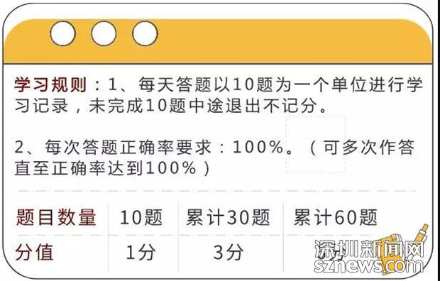 值得注意的是,申請(qǐng)減分學(xué)習(xí)的駕駛必須符合駕駛證準(zhǔn)駕車型為C1、C2、C3,車輛所屬地和違法發(fā)生地均為深圳,累計(jì)記分≤9分(一次性記滿12分,或已經(jīng)累計(jì)達(dá)到12分的駕駛?cè)顺猓┑臈l件,符合這些條件的即可進(jìn)入“深圳交警星級(jí)用戶——微課堂——消分學(xué)習(xí)——答題攢分”進(jìn)行減分學(xué)習(xí)。每天答題以10題為一個(gè)單位進(jìn)行學(xué)習(xí)記錄,未完成10題中途退出不記分,每次答題正確率要求為100%,即答對(duì)10題可獲得1分,累計(jì)答對(duì)30題可獲得3分,累計(jì)答對(duì)60題可獲得6分。