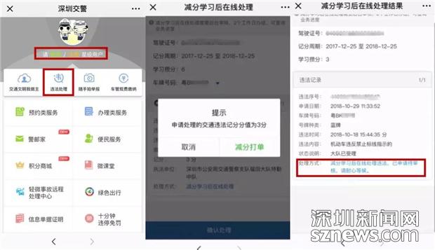 獲得記分后,可打開深圳交警星級(jí)用戶入口(微信公眾號(hào)、支付寶城市服務(wù)、深圳交警APP),點(diǎn)擊“違法處理-使用減分學(xué)習(xí)獲得記分處理交通違法”申請(qǐng)辦理,2個(gè)工作日內(nèi)完成審核,申請(qǐng)人可在線繳款,處理完畢。值得注意的是,減分學(xué)習(xí)獲得的記分只能處理深圳車在深圳范圍內(nèi)的交通監(jiān)控設(shè)備的交通違法,并且單次處理的交通違法記分不得超過3分,一次記分周期內(nèi)使用此部分記分處理不得超過6分。