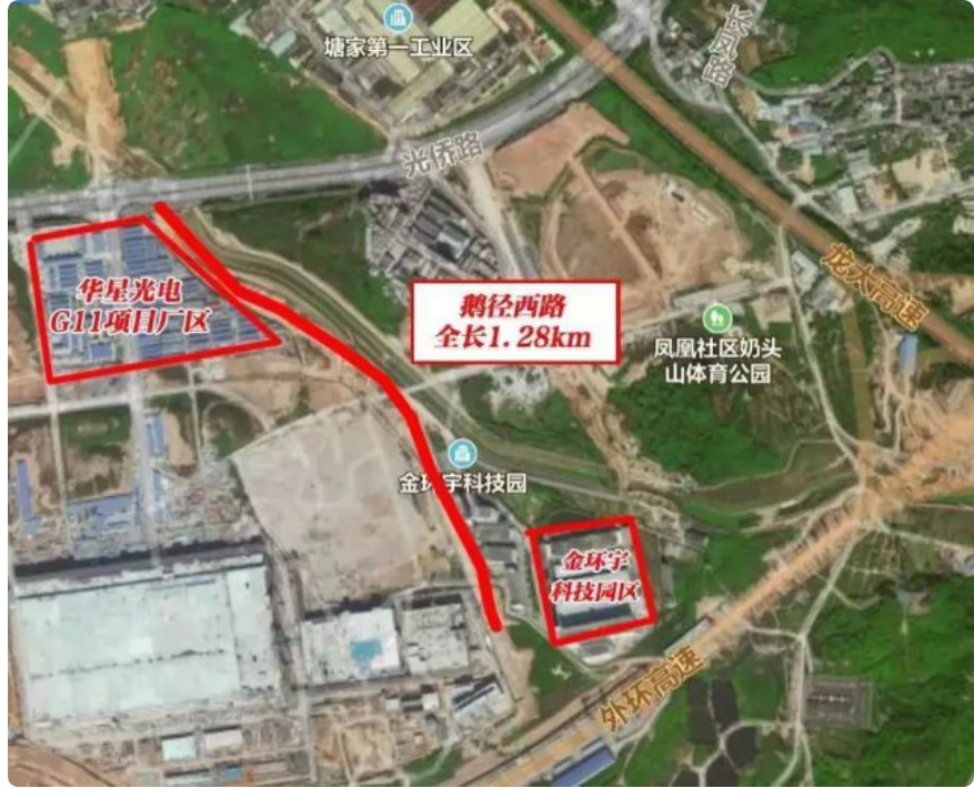 鵝徑西路位于光明區(qū)高新技術產(chǎn)業(yè)園區(qū)西片區(qū)內(nèi),北起光僑路,沿華星光電 G11項目廠區(qū)東側由北向南布設,設計終點與長鳳路(規(guī)劃中)相交,整體呈南北走向。全長1.28km,是一條城市支路,設計速度20km/h,雙向兩車道。目前,鵝徑西路全部完成機動車道、人行道、綠化、路燈、交通標牌標線,道路通行后方便高新技術產(chǎn)業(yè)園片區(qū)居民和企業(yè)出行。在金環(huán)宇科技園區(qū)上班的小伙伴,以后直接從光僑路轉(zhuǎn)到鵝徑西路就能到公司,全長1.28公里,上班方便多了。