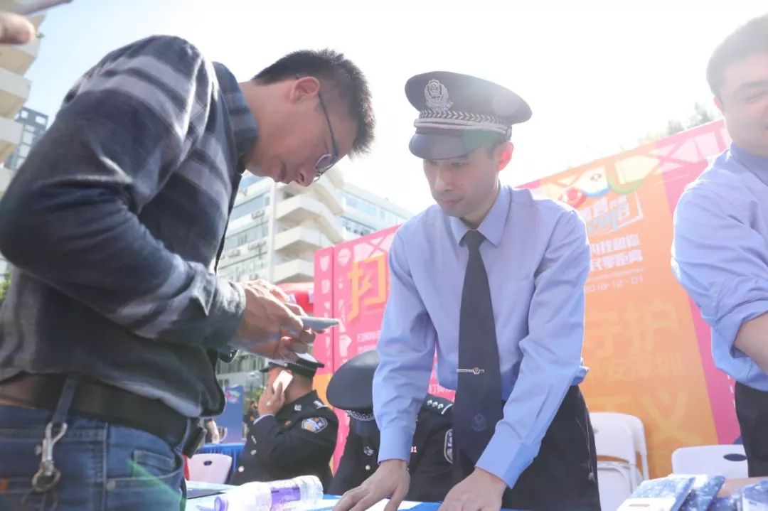 福田公安分局反詐騙宣傳團(tuán)隊(duì)開展反詐騙宣傳、互動(dòng)游戲,通過異形展板、反詐騙海報(bào)等,向市民防范宣講常見詐騙手段,群眾紛紛拿起手機(jī)“移形換影”自拍,掃一掃“福田警察”二維碼,加入到反詐騙行動(dòng)隊(duì)伍,為“反詐騙”代言,提高防騙技能。同時(shí),分局法制、經(jīng)偵、禁毒、出入境、戶政等部門現(xiàn)場擺臺,民警一一解答群眾提出的各類咨詢問題。