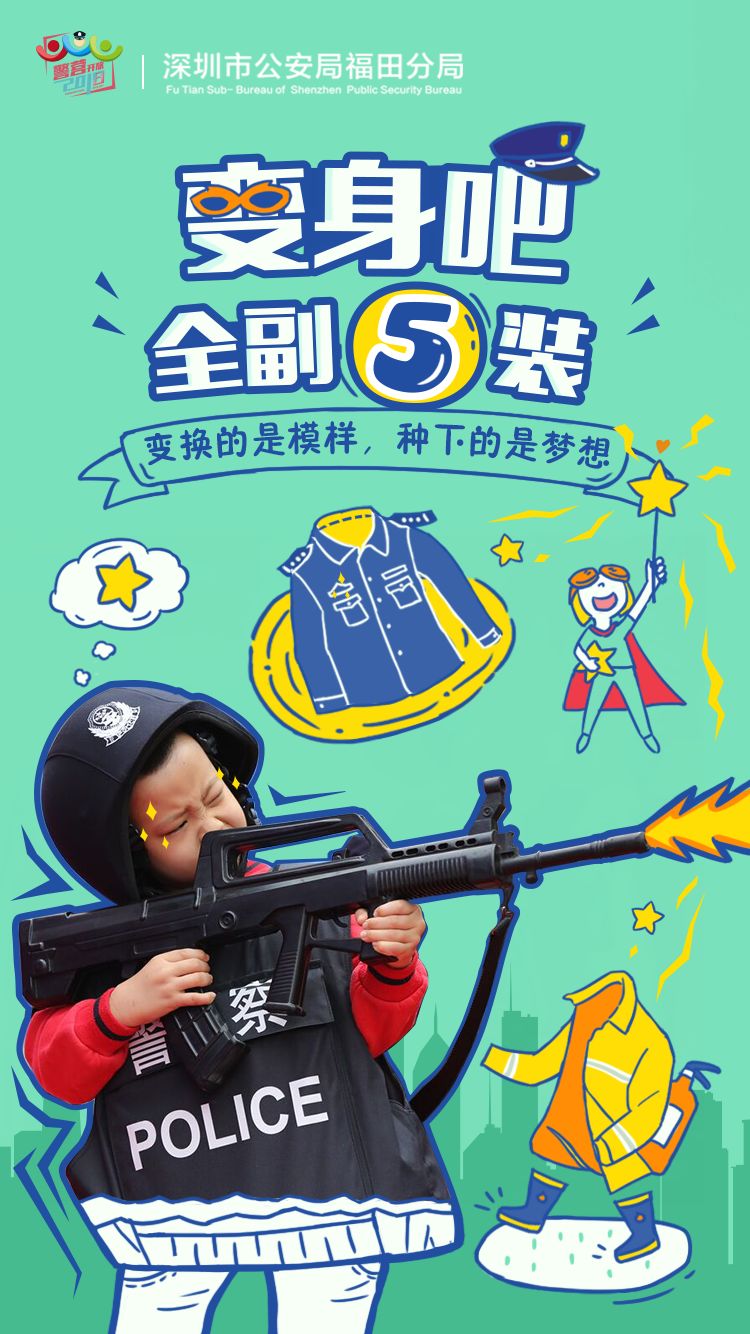 福田警方從11月26日開始,連續(xù)推出開放日倒計(jì)時(shí)5期主題海報(bào):“變身吧,全副‘5’裝”、“趣玩吧,‘四’意嬉戲”、“學(xué)習(xí)吧,舉一反‘3’”、“見面吧,為你‘2’來”、“一起吧,‘1’起警彩”,向市民發(fā)出邀請函,通過官方微信、微博等新媒體平臺發(fā)布,搶先看精彩。
