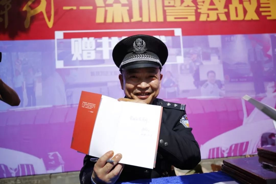 當(dāng)天上午,人民公安出版社副總編李國強(qiáng)、著名作家李迪與市公安局領(lǐng)導(dǎo)來到福田分局開放點(diǎn)現(xiàn)場為深圳公安“每日警星”代表簽名贈(zèng)書。在贈(zèng)書點(diǎn),許多市民排起了長隊(duì),領(lǐng)取《英雄時(shí)代——深圳警察故事》。