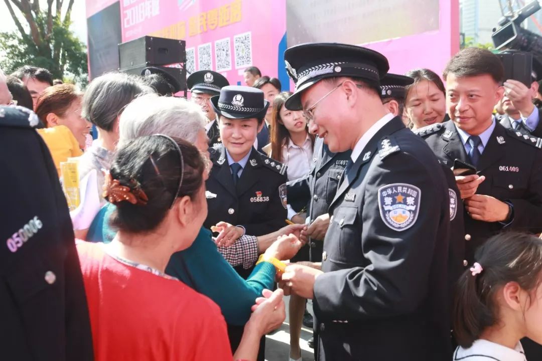 儀式后,深圳市副市長、公安局長徐文海現(xiàn)場為來參觀活動(dòng)的老人和小孩佩戴了“黃手環(huán)”,陽光的顏色,給人溫暖,讓人安心,傳遞了正能量。