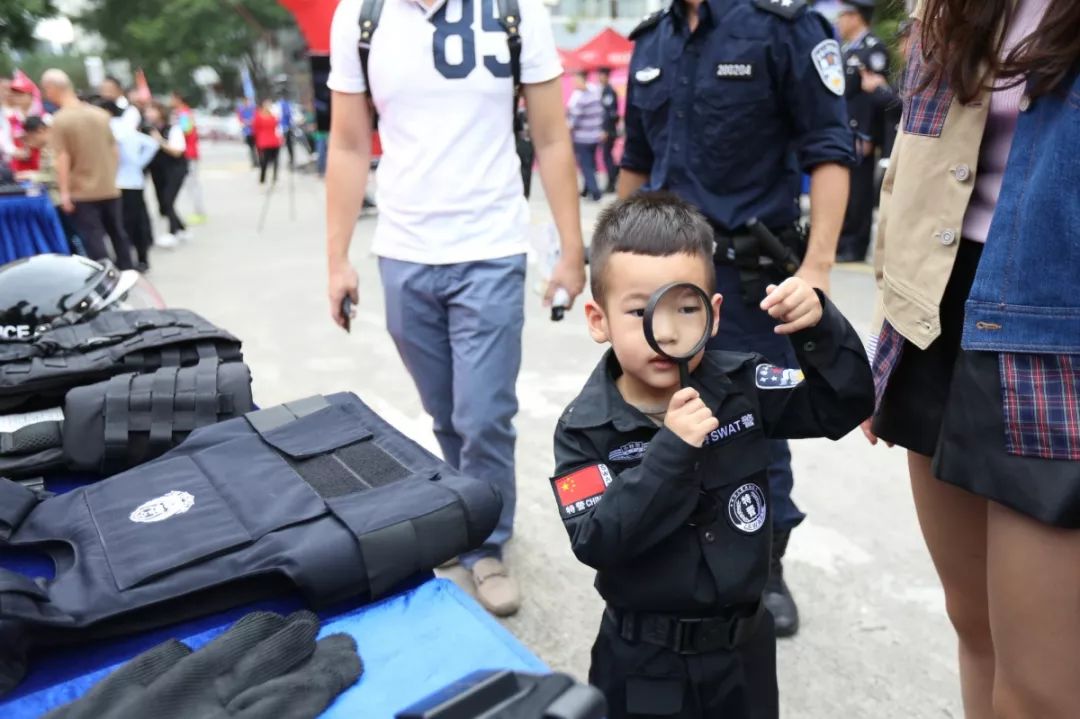 防暴盾牌、槍支警械威武霸氣,隊(duì)列棍術(shù)、擒拿格斗輪番上陣。很多人興致勃勃地穿戴警用裝備,頭戴鋼盔、身穿警服,登上反恐敞篷車拍照留念,圓夢警察夢想。