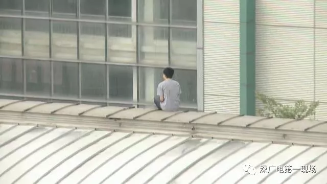 發(fā)現(xiàn)男子的進入軌行區(qū)后,地鐵工作人員馬上聯(lián)系警方,隨后警方和消防人員也趕到現(xiàn)場,這時這名男子已經(jīng)坐在了荷坳站的頂棚上。