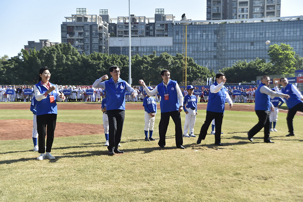 開(kāi)幕式上,中華全國(guó)臺(tái)灣同胞聯(lián)誼會(huì)會(huì)長(zhǎng)黃志賢、國(guó)務(wù)院臺(tái)辦副主任龍明彪、中共深圳市委常委林潔、臺(tái)灣新北市副市長(zhǎng)李四川等為比賽開(kāi)球。
