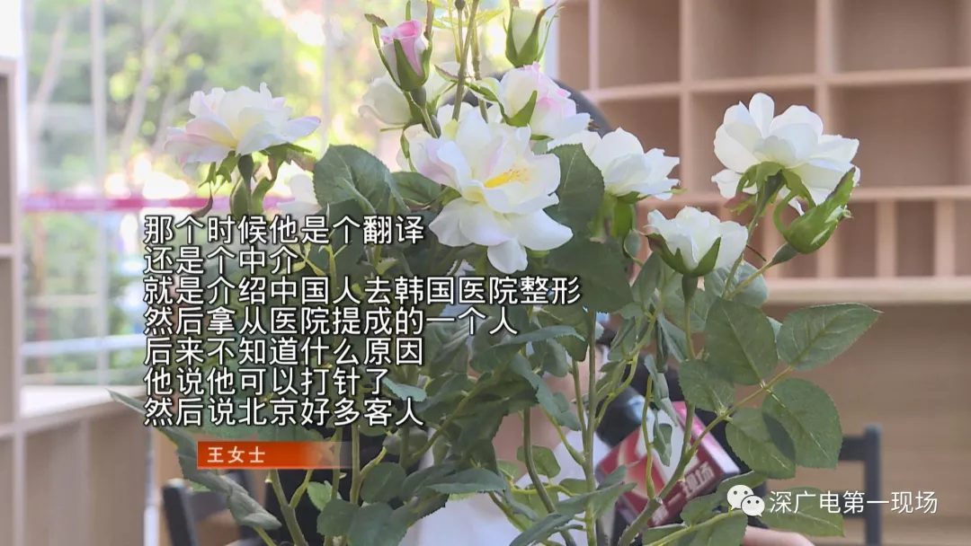 王女士說,認(rèn)識(shí)這名韓國男子后,對(duì)方多次給她打了整容針,打針的地方基本都是羅湖一家星級(jí)酒店的客房里面。