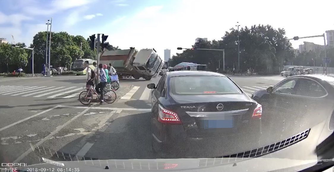 9月12日早上8點(diǎn)14分許,謝某勇駕駛粵BEE930號重型自卸貨車在寶安區(qū)新安街道新安一路由東往西行駛至翻身路口時,遇同方向右側(cè)陳某強(qiáng)駕駛的粵PC8922號摩托車斜插進(jìn)入路口,謝某勇立即采取緊急制動并向左側(cè)打方向避讓,導(dǎo)致車輛側(cè)翻與陳某強(qiáng)發(fā)生碰壓后,車上的泥土瞬間傾瀉而出,沖擊在該路口西側(cè)路中安全島等候通行的5個人(4人皮外傷),致兩臺車不同程度損壞,陳某強(qiáng)當(dāng)場死亡。