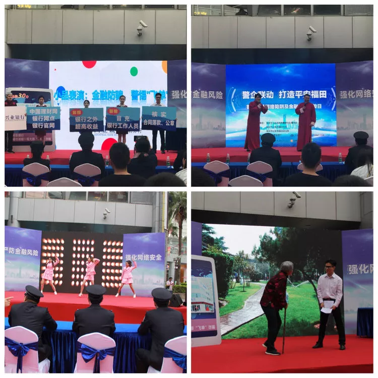 節(jié)目?jī)?nèi)容豐富多彩?,F(xiàn)場(chǎng)通過"假冒公檢法詐騙風(fēng)波"、"金融防騙、警惕'飛單’"、"網(wǎng)絡(luò)安全相聲表演"等小品、情景劇、歌舞、魔術(shù)等精彩節(jié)目,精彩的節(jié)目結(jié)合著反詐騙常識(shí),讓群眾輕松又深刻地了解常見的網(wǎng)絡(luò)詐騙手段及金融風(fēng)險(xiǎn)。